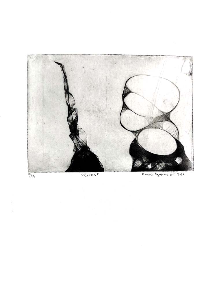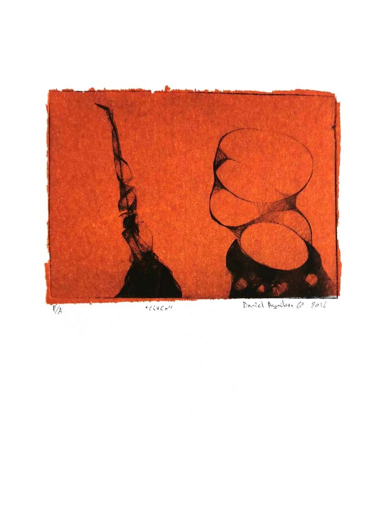 Estampas P/A en tinta negra y sobre papel de seda rojo